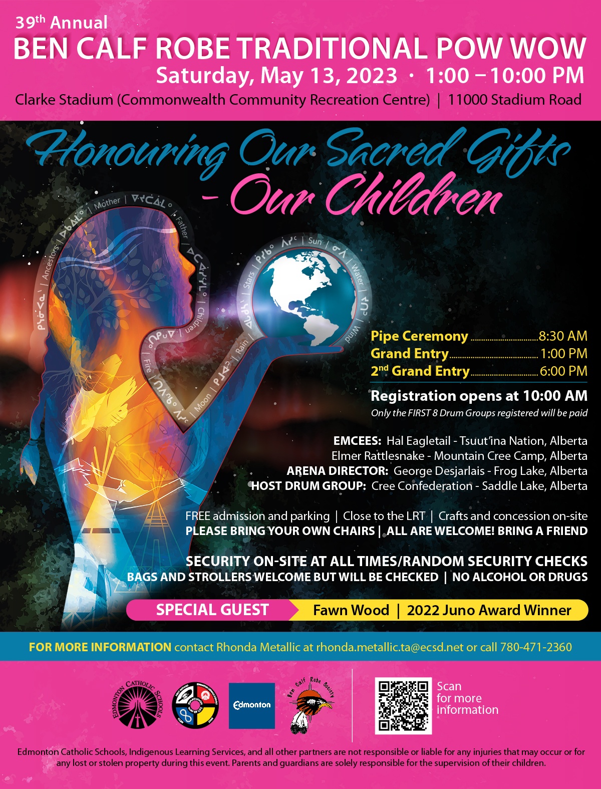 Edmonton Catholic Schools and Indigenous Learning Services, in partnership with the City of Edmonton, hosted the 39th Annual Ben Calf Robe Traditional Powwow on Saturday, May 13, 2023.